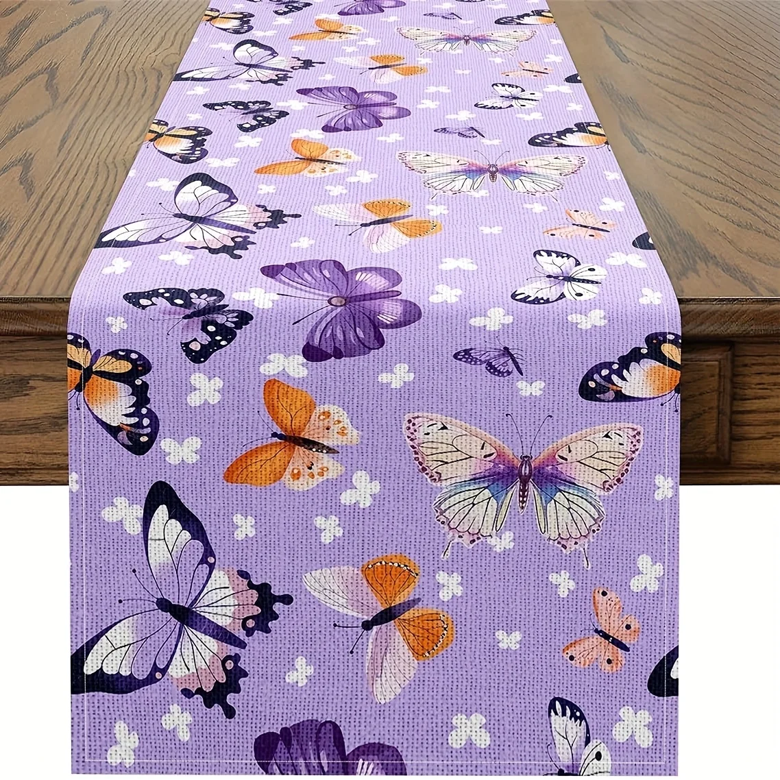 Light Purple Butterfly Linen Table Runner - Beautiful Print, Kitchen Dining Seasonal Animal Home Decor