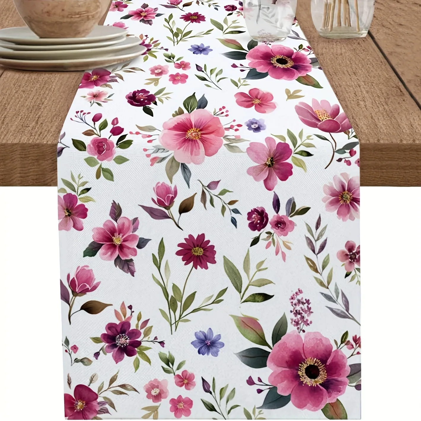 Linen Spring Wildflower Table Decoration Table Flag - Pink/Purple Anti slip and Heat resistant Flower Design Table Runner Suitab