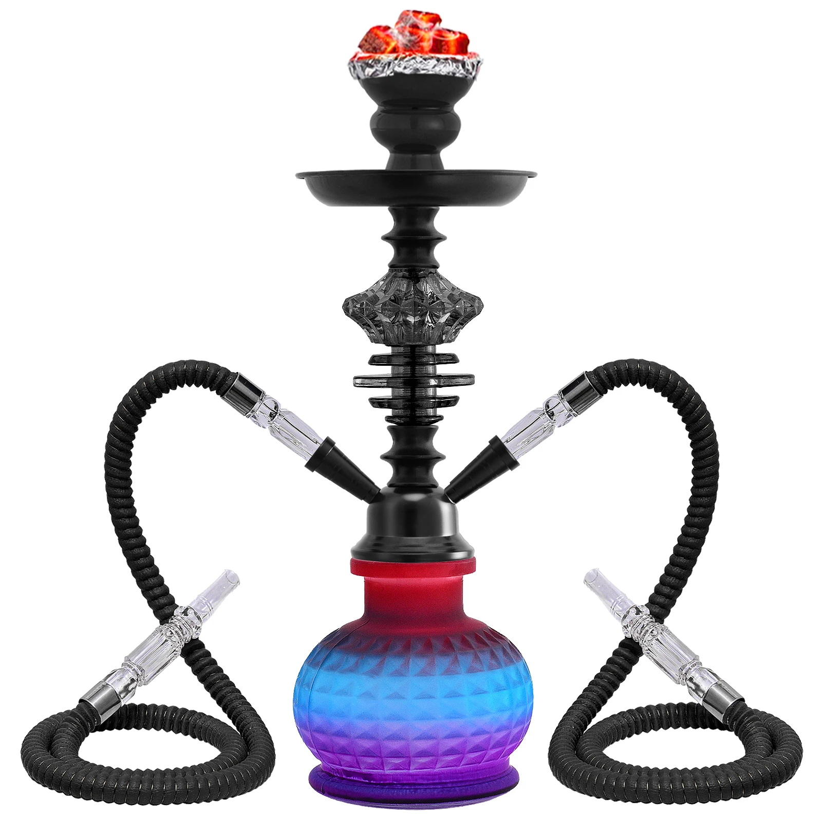 14inch Arabian Hookah Set Glass Base Ceramics Bowl Shisha Double Dual Hoses pipe Travel Kit Colorful Black PurpleHookah