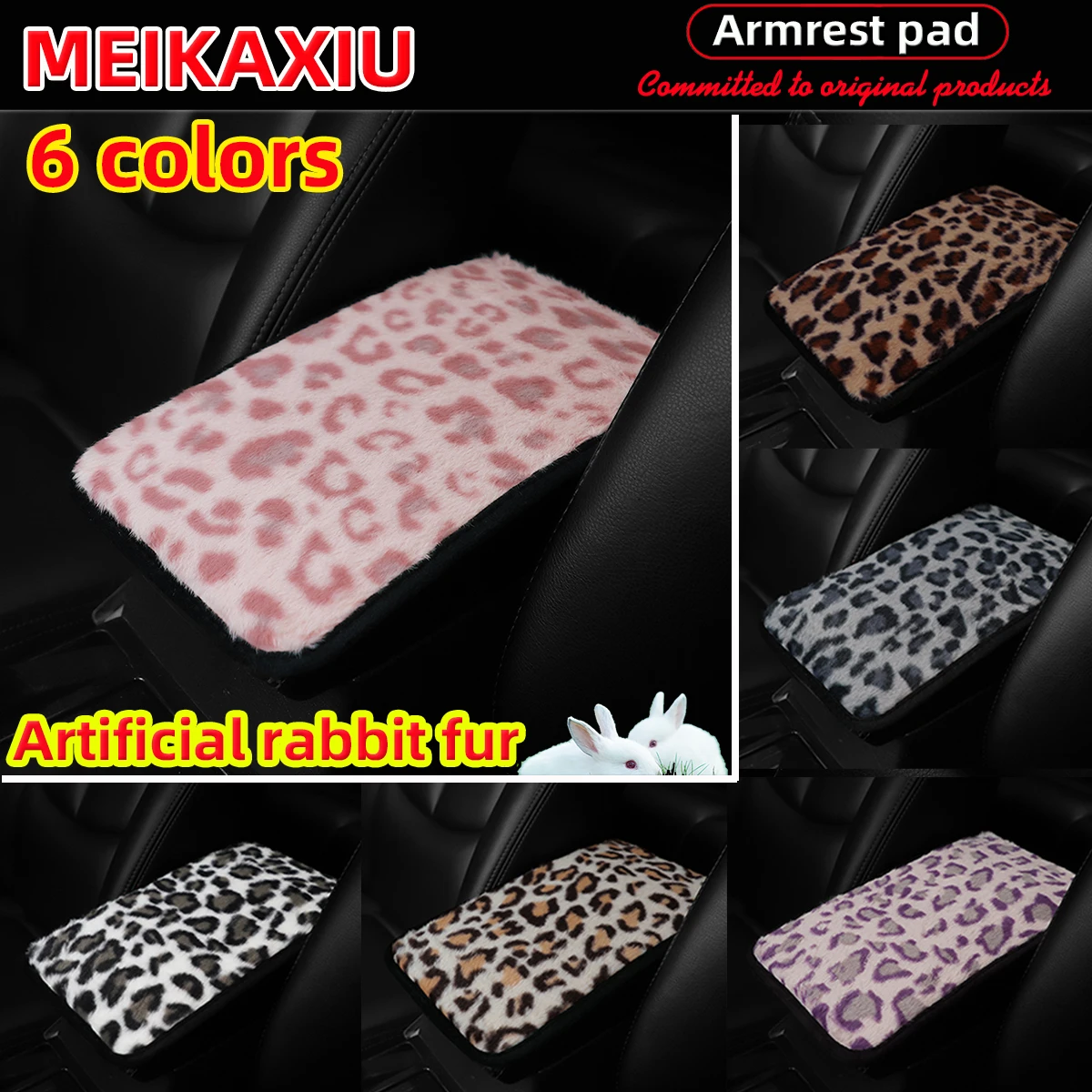 1 winter comfortable and soft artificial rabbit fur leopard print new car armrest cover 12.6 inches x 7.5 inches car accessories
