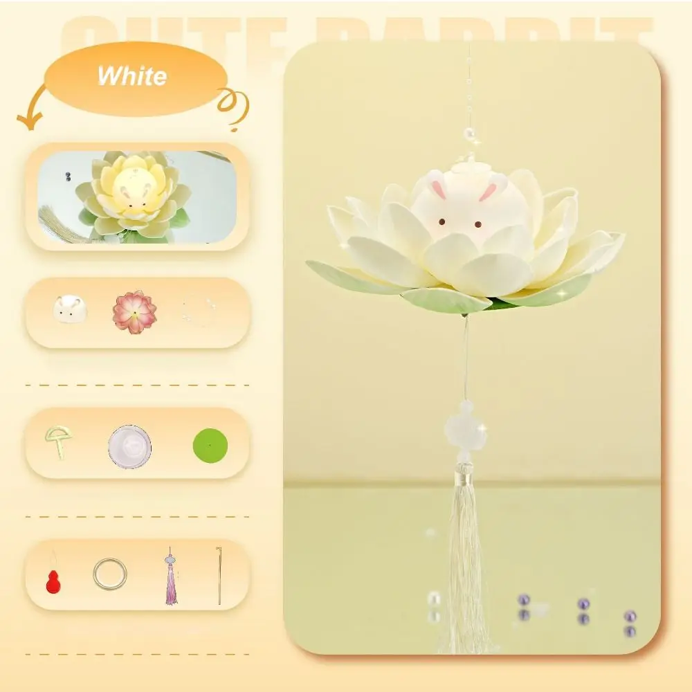 Cute DIY Mid-Autumn Festival Lantern Glowing Handmade Lotus Rabbit Lamp Traditional Mini Holiday Decoration