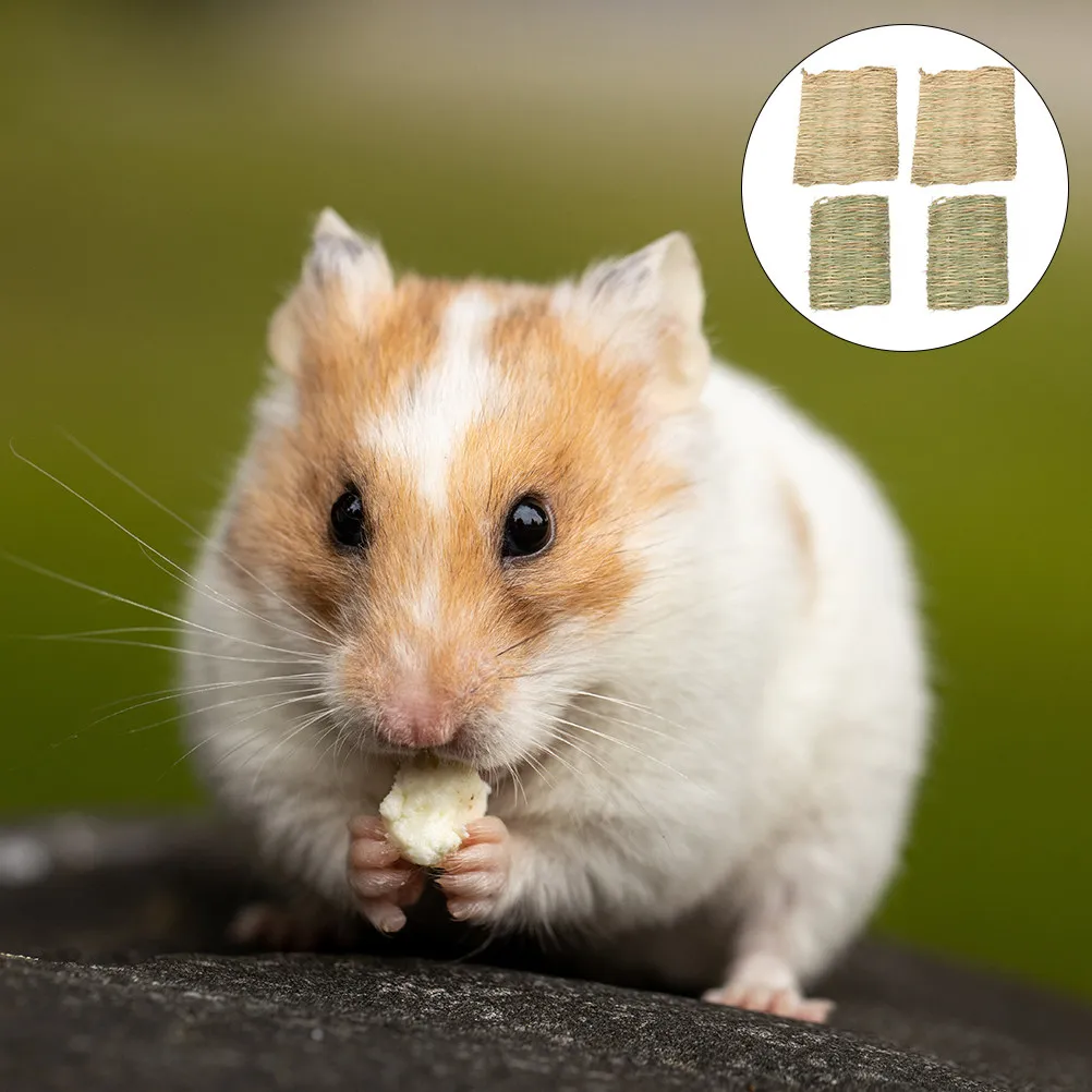 4Pcs Breathable Grass Mat for Small Pets Natural Fiber Cooling Pad Hamster Rabbit Nest Woven Comfortable Shelter