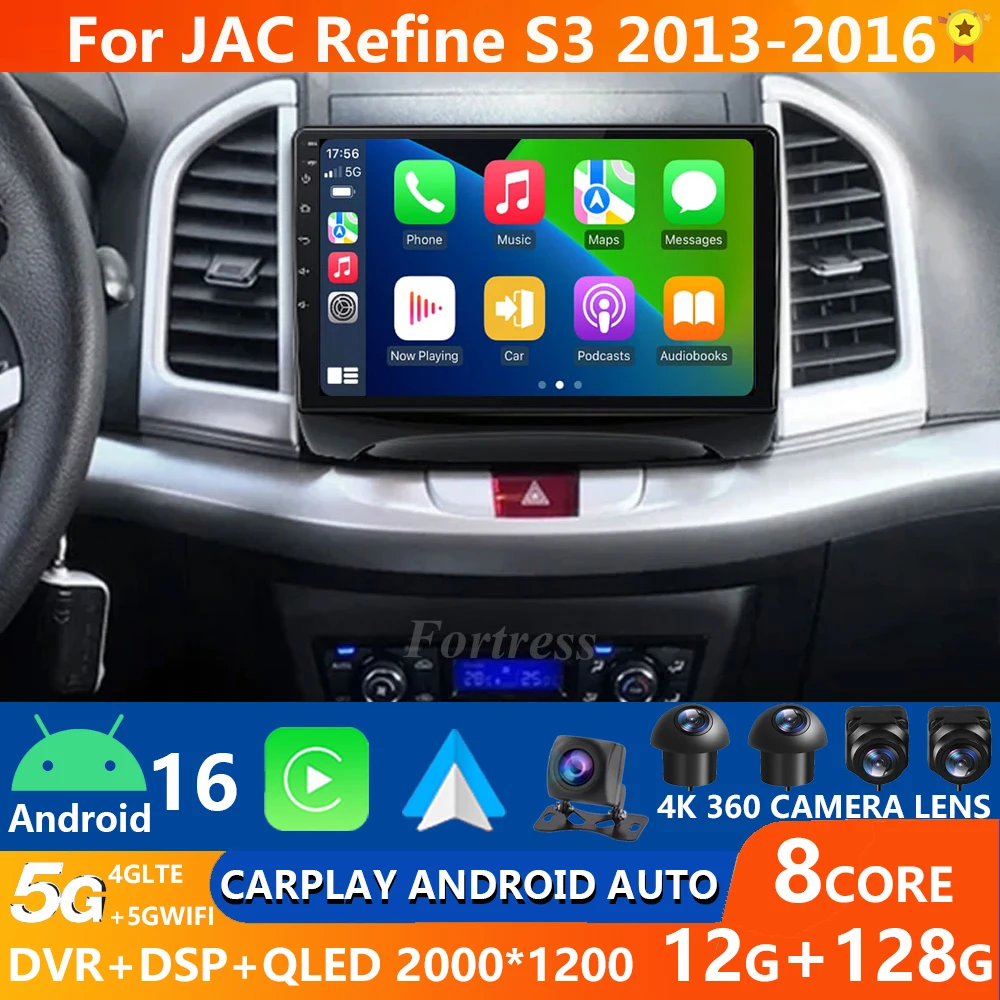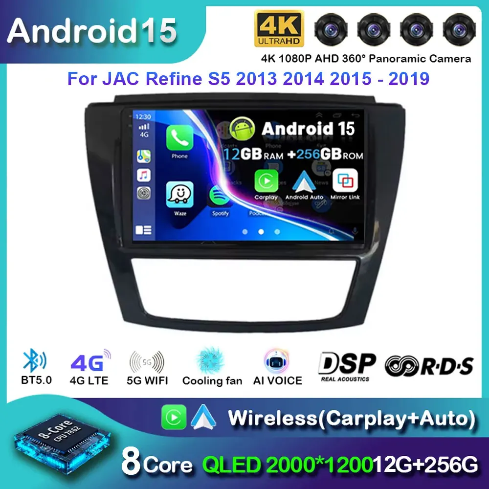 Android 15 For JAC Refine S5 2013 2014 2015 - 2019 Car Radio Navigation GPS Multimedia Video Player Stereo Carplay+Auto WiFi+4G