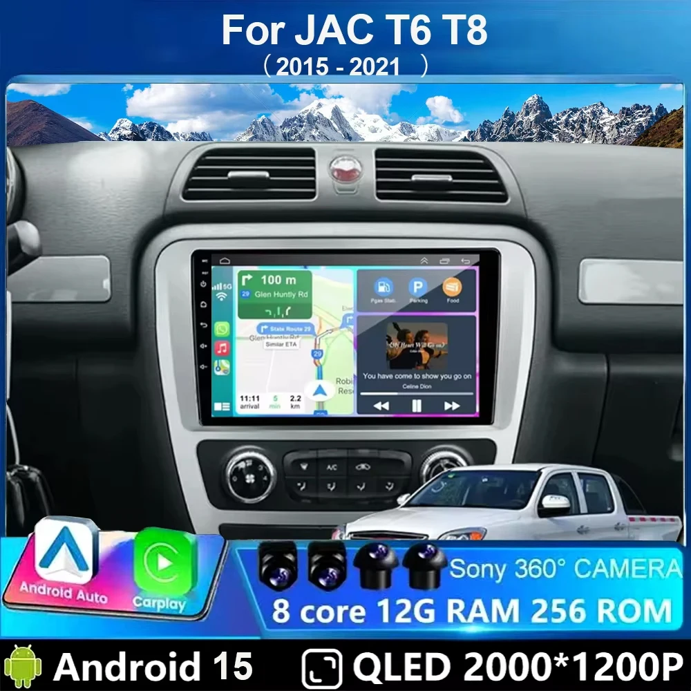 Android 15 GPS Navigation For JAC T6 T8 2015 2016 2018 2022 2021 Car DVD Player Headunit Radio Stereo Carplay Auto 360 Camera 4G