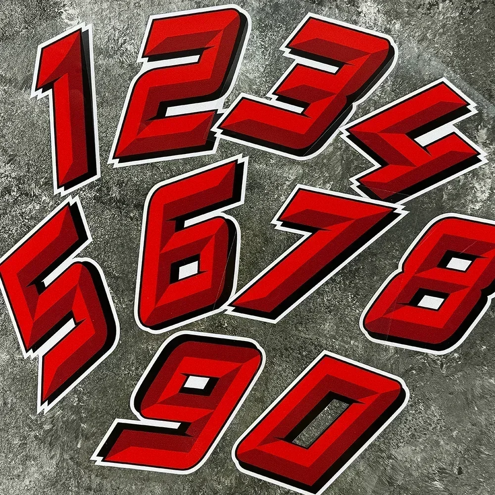 Red Number Vinyl Decals 0123456789 Waterproof Motorcycle Car Stickers for Motorbike Fuel Tank Fairing Racing Helmet Decoration