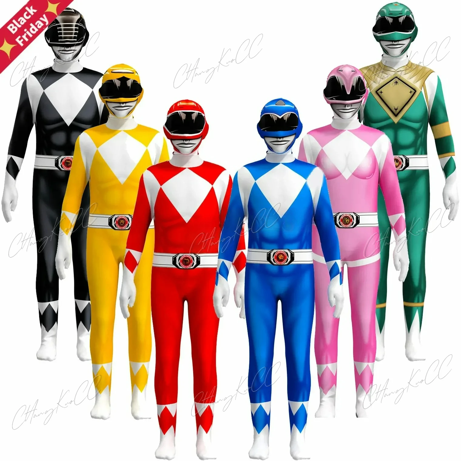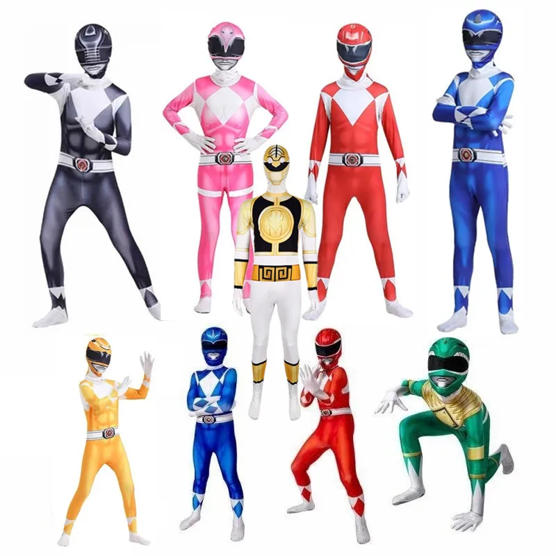 Power Samurai Sentai Rangers Costume Adult Kids Superhero Cosplay Halloween Birthday Party Jumpsuit Zentai Suit
