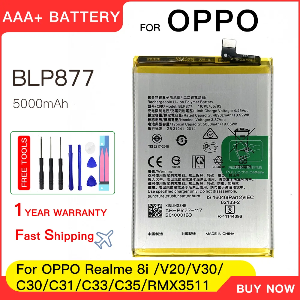 Genuine 5000mAh BLP877 Battery For OPPO Realme 8i RMX3151 C35 RMX3511 C30 C31 C33 V20 V30 Phone Replacement Batteries batteria