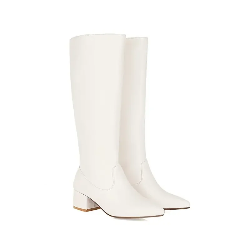 Women's Knee High Boots 2025 Winter Shoes Black White Red Yellow High Heels Long Boot Ladies Footwear Shoes Large Size 45 48 50
