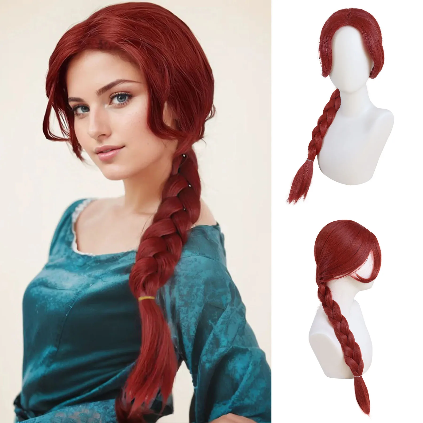 Shrek Anime Synthetic Hair Long Braided Reddish Brown Heat Resistant Costume Wig for Fiona Cosplay Adult Fiona Costume Women
