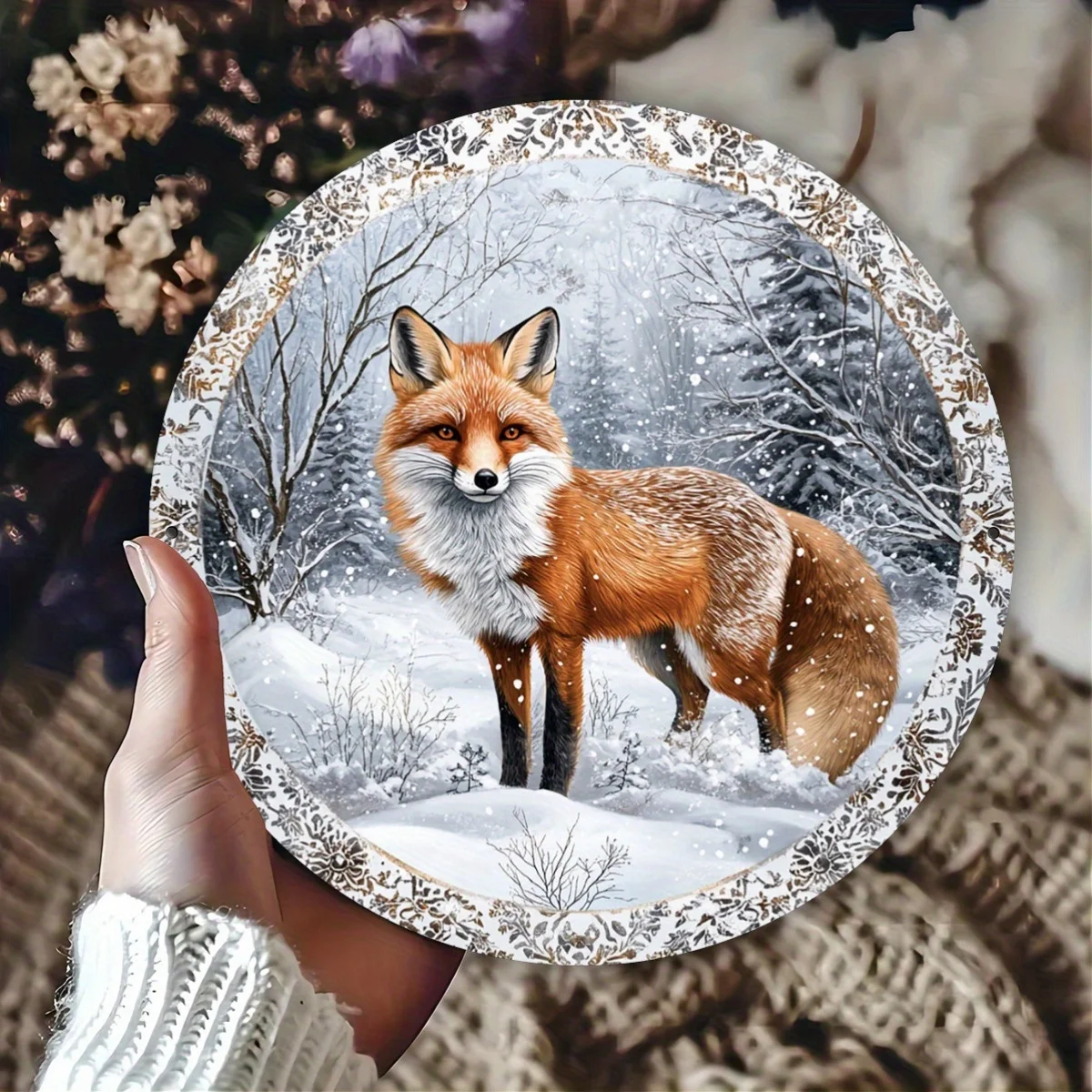 1pc Rustic Red Fox Winter Theme Round Aluminum Sign, 8x8 inches (20x20cm), Home, Kitchen, Garden & Office Vintage Decor, Perfect