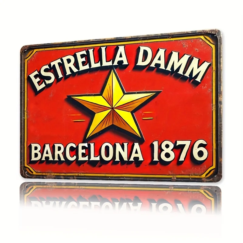 "Estrella Damm" Metal Wall Art Sign --Inspired Red & Yellow Design with Star Emblem, Durable Iron Decor for Kitchen, Bar, fo