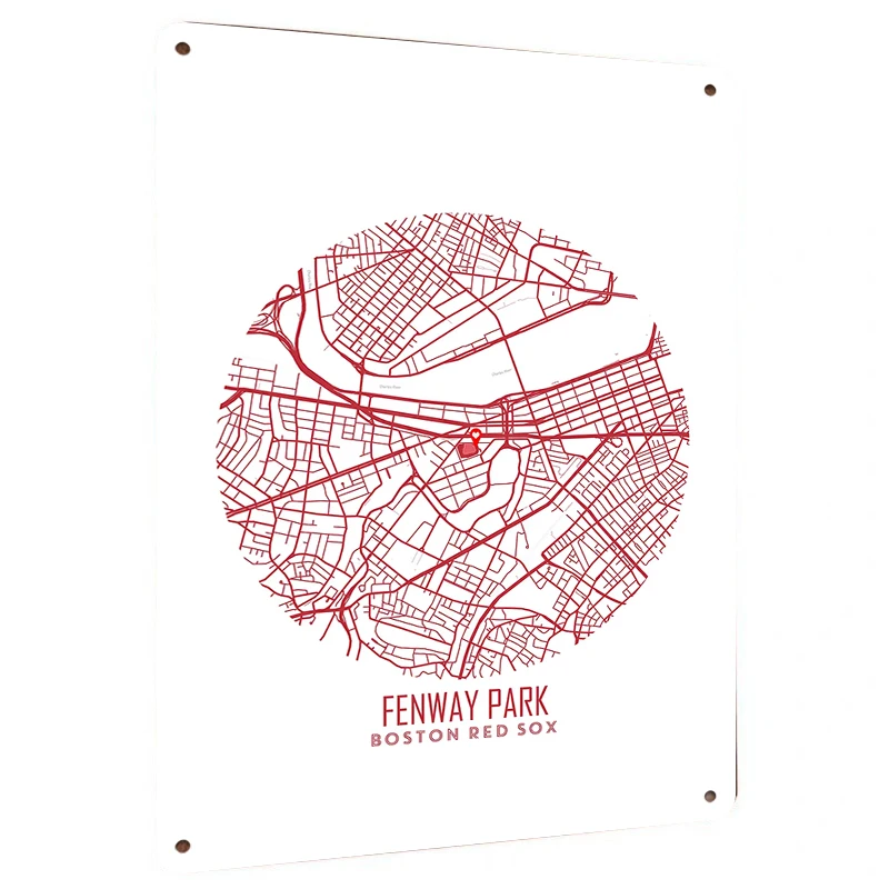 Fenway Park Boston Red Sox Map Metal Wall Art Custom Vintage Baseball Stadium Decor for Sports Fans