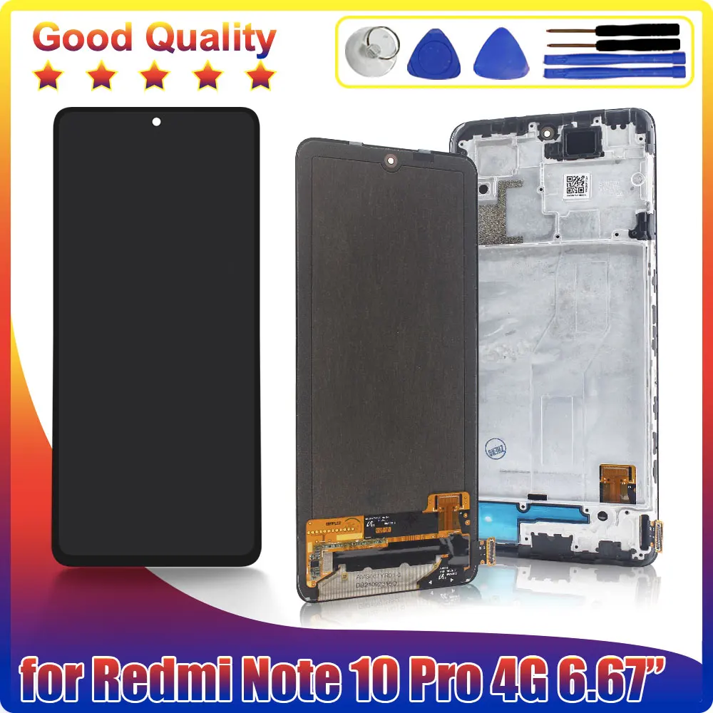 AMOLED For Xiaomi Redmi Note 10 Pro 4G LCD Display M2101K6G M2101K6R LCD With Frame Screen Touch Panel Sensor Digitizer Assembly