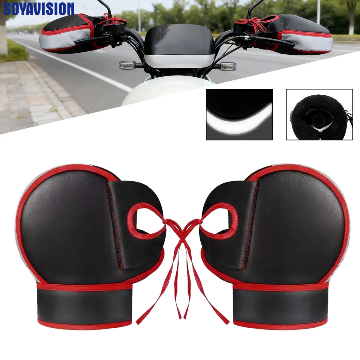 Motorcycle Handlebar Muffs Gloves Reflective Windproof Thick Winter Warm Handle Grip Thermal Cover For E-bike Scooter Motorbike