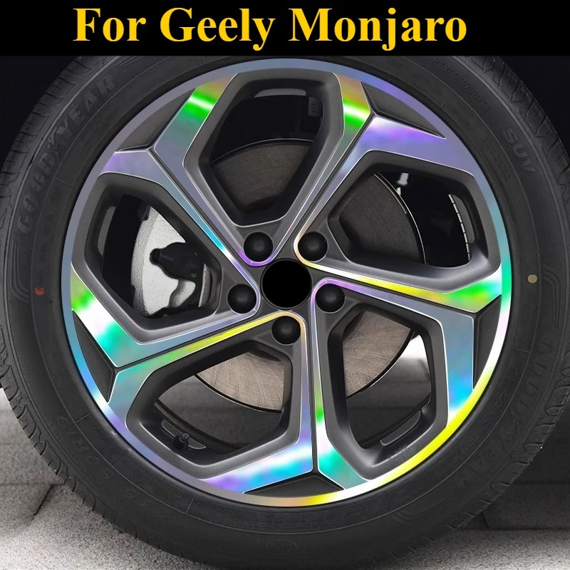 For Geely Monjaro Wheel Stickers Reflective Laser Chrome Rim Vinyl Wrap Alloy Wheel Cover & Scratch Repair Kit 19\20" 4 pieces