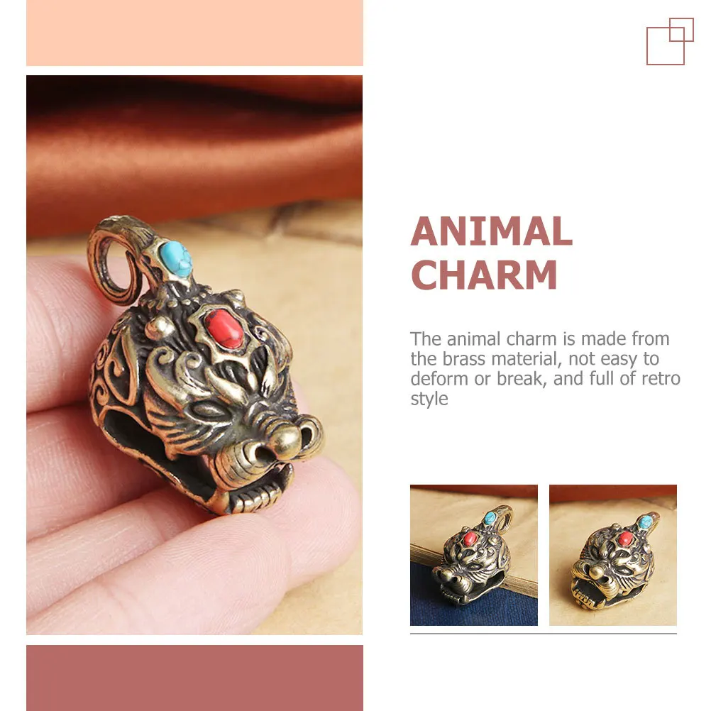 3Pcs Brass Pi Yao Keychain Pendants Vintage Animal Bell Charms DIY Key Ring Hanging Decor Retro Brass Craft Adornments