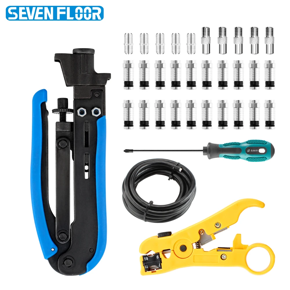 RG6 RG59 RG11 Wire Stripper Crimper Tool Kit Coaxial Cable Crimping Pliers Set with F BNC Compression Connectors