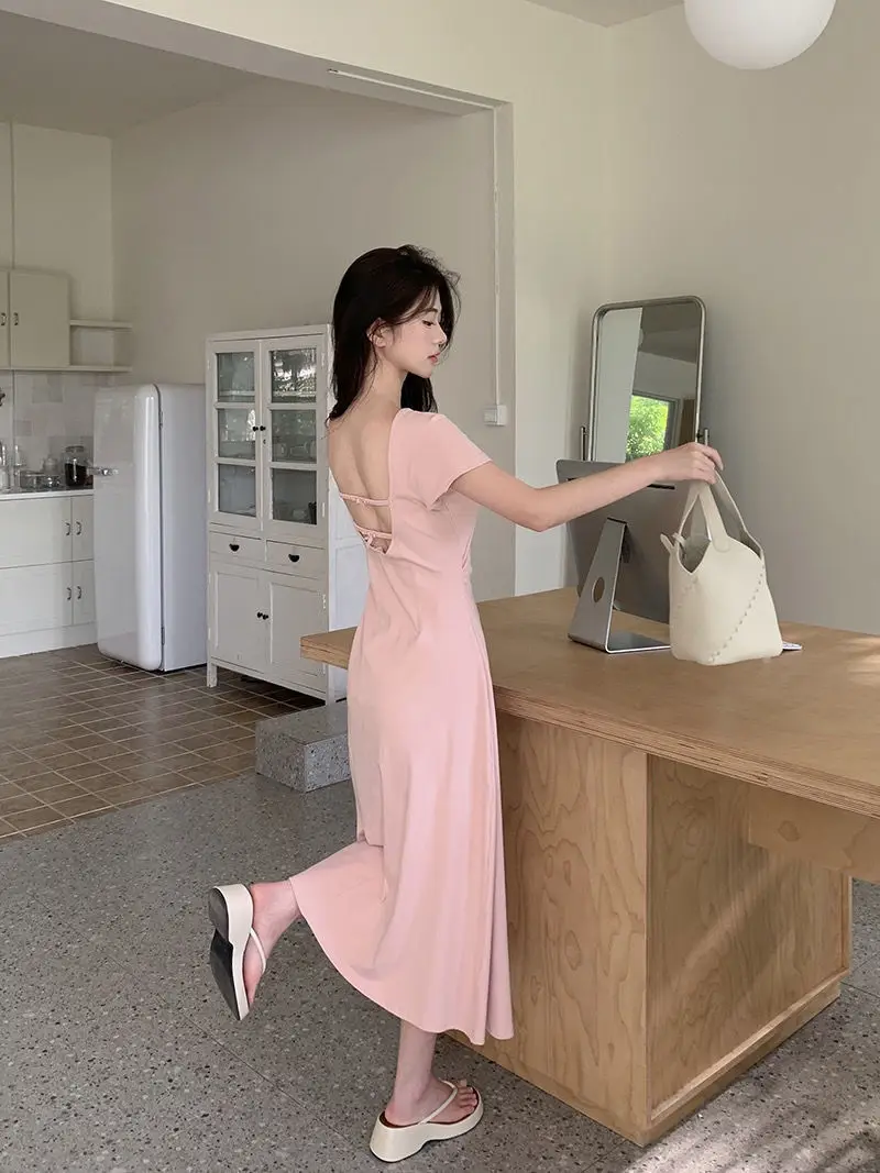 Dresses Short Sleeved Womens Petite Summer Cupro Multiway Neon Y2K Spaghetti Strap Ulzzang Slim Trendy All-Match Patterned Spicy
