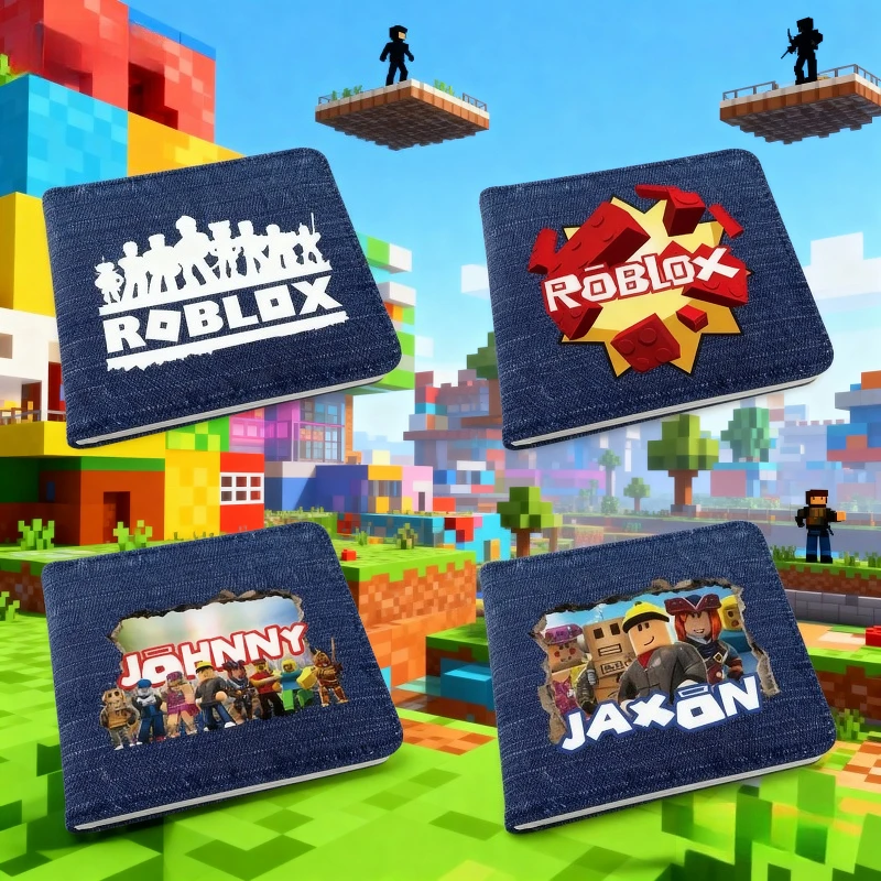 New Game ROBLOX Theme Series Print Wallet Fashion Short Denim Wallet Lightweight Zipper Wallet Birthday Gifts
