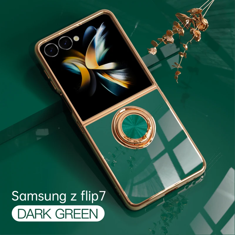 Fashion Electroplating Cases With Rotatable Ring Bracket For Samsung Galaxy Z Flip 7 FE 6 5 4 3 Durable Shockproof Protect Cover