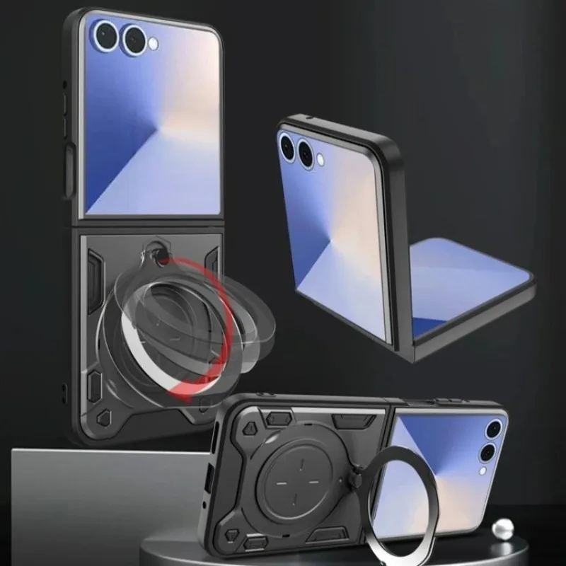 Armor Magnetic Car Holder Protective Cover For Samsung Galaxy Z Flip 7 FE Rotatable Adsorbable Bracket Ring Anti-Drop Flip Cover