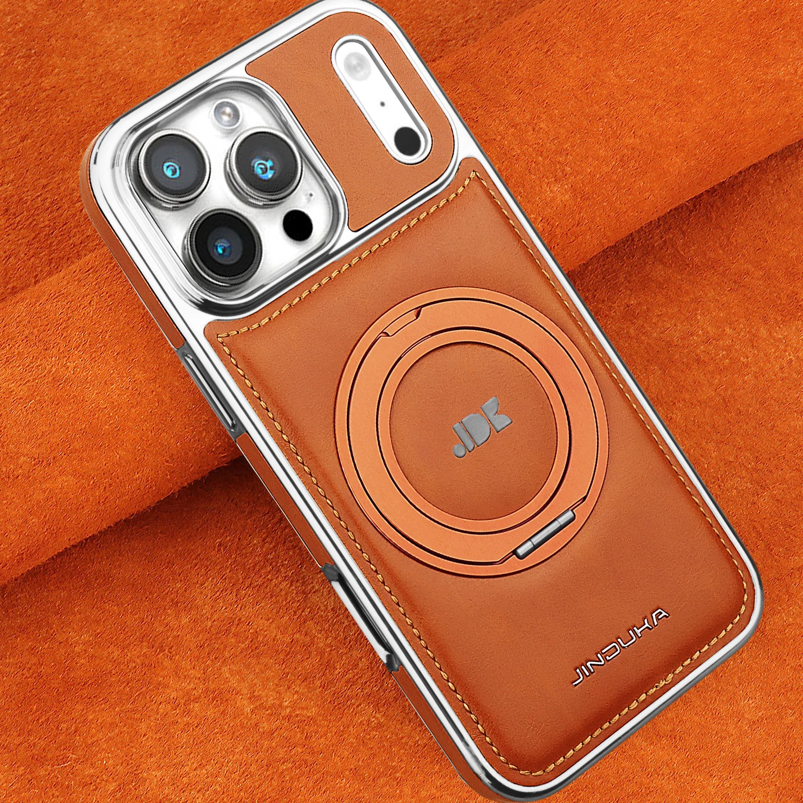 Luxury Magnetic 360 Rotating Kickstand Leather Phone Case For iPhone 17 Pro Max 16 Plus 15 14 13 Ring Holder for Magsafe Cover