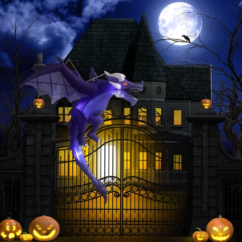 1.9M Halloween Knight Riding Dragon Inflatable Decor with LED Lights Huge Halloween Inflatable Dragon Festive Outdoor Decor