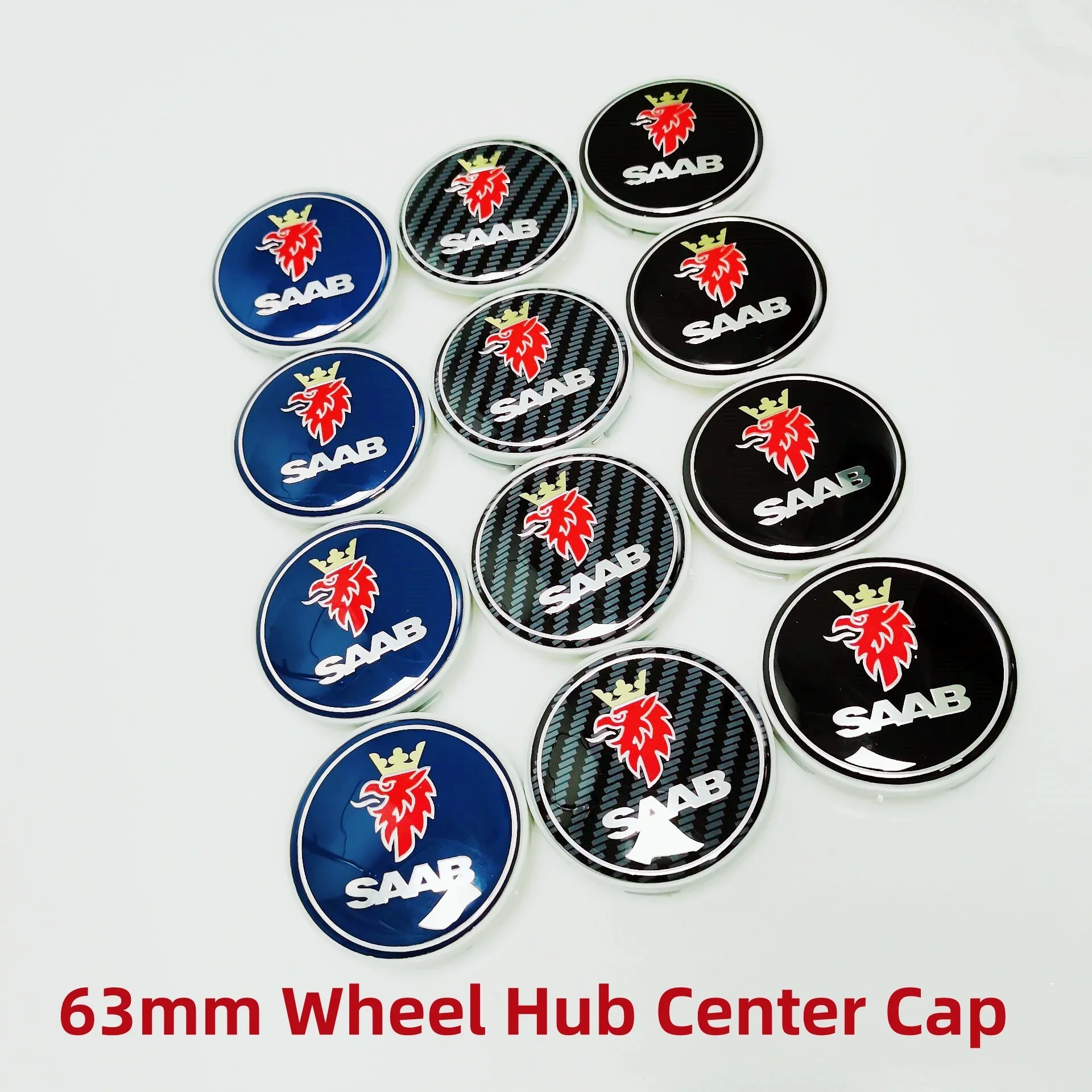 4pcs 63mm Blue Carbon Black SAAB Emblem Logo Car Wheel Center Cap Rim Hub Cover Badge For SAAB 93 95 9-3 9-5 Styling Accessories