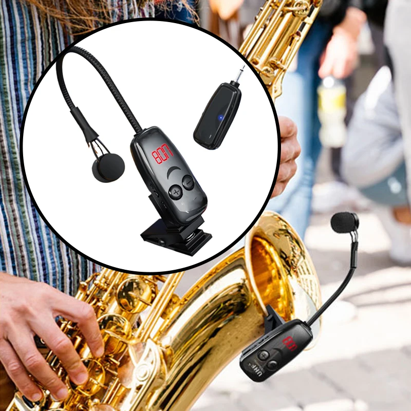 Wireless UHF Saxophone Microphone System Brass Instruments Professional Stage Performance Clip-On Radio Microphone