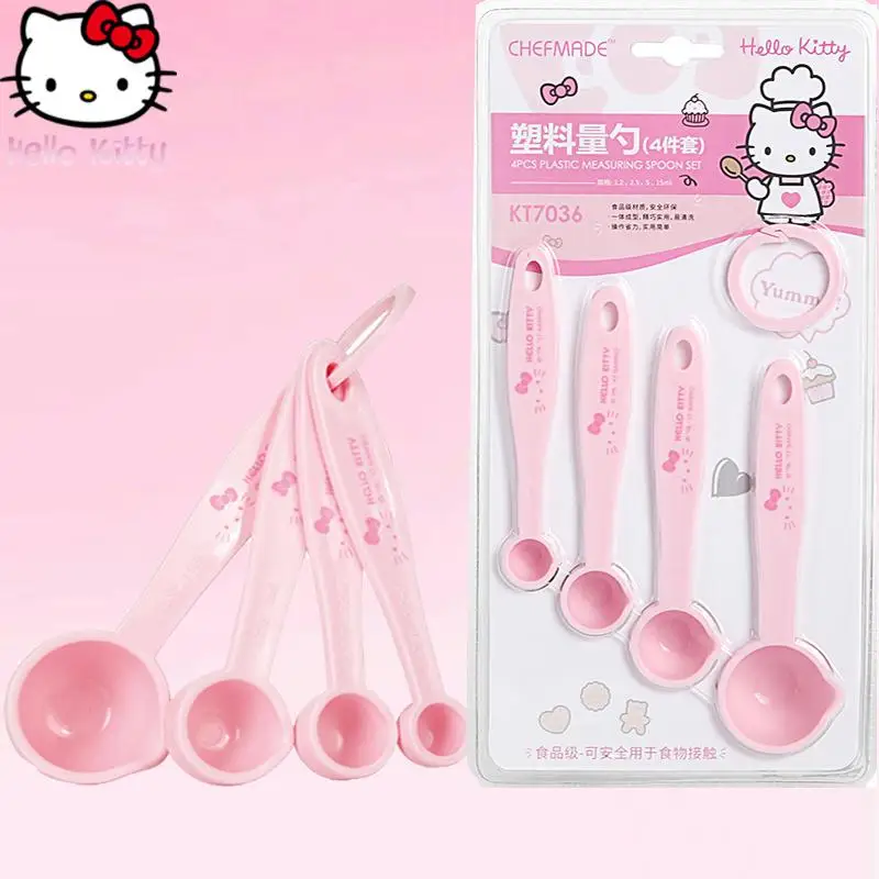 Hello KittyS Measuring Spoon new Anime Cinnamoroll Double Scale Spoon 4 Piece Set Baking Tools Kitchen Household Cute Gift