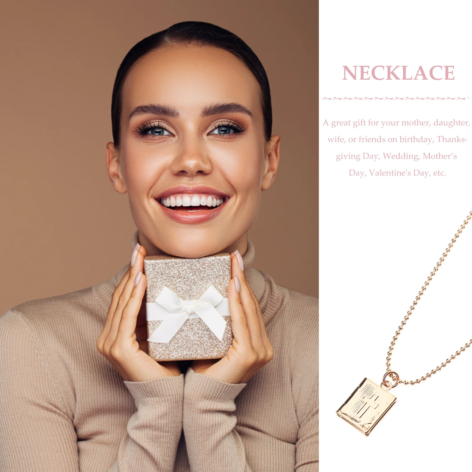 Photo Locket Necklace Bible Pendant Vintage Jewelry for Women Daily Wear Elegant Accessory Chain for Ceremony Date Outfit