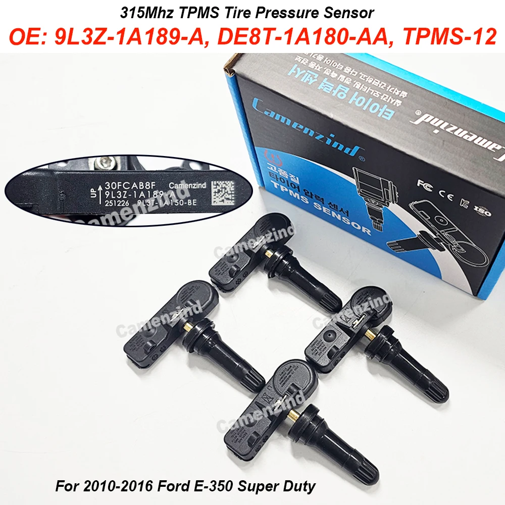 4PCS 9L3Z1A189A 9L3Z-1A189-A 315MHz TPMS Programmed Tire Pressure Sensor DE8T-1A180-AA TPMS-12 For Ford C-Max E-150 Escape F-150