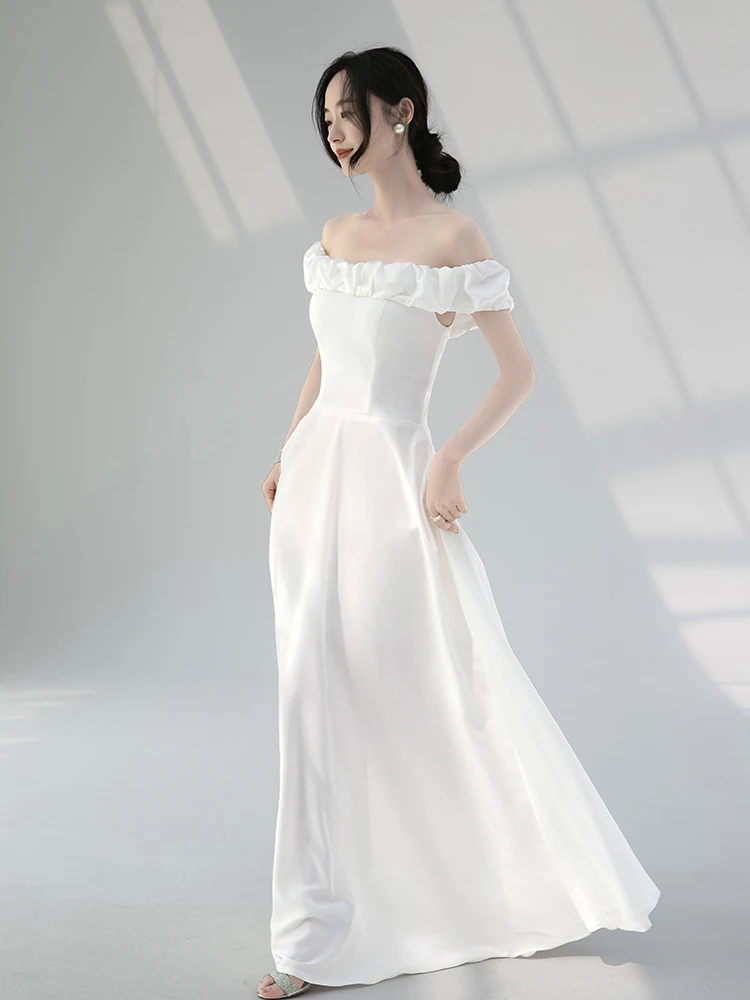 Ele Satin Maids Dr One oulder Long Gown Wedding Ceremony Registration Formal Event Casual Wear Polyester Fiber
