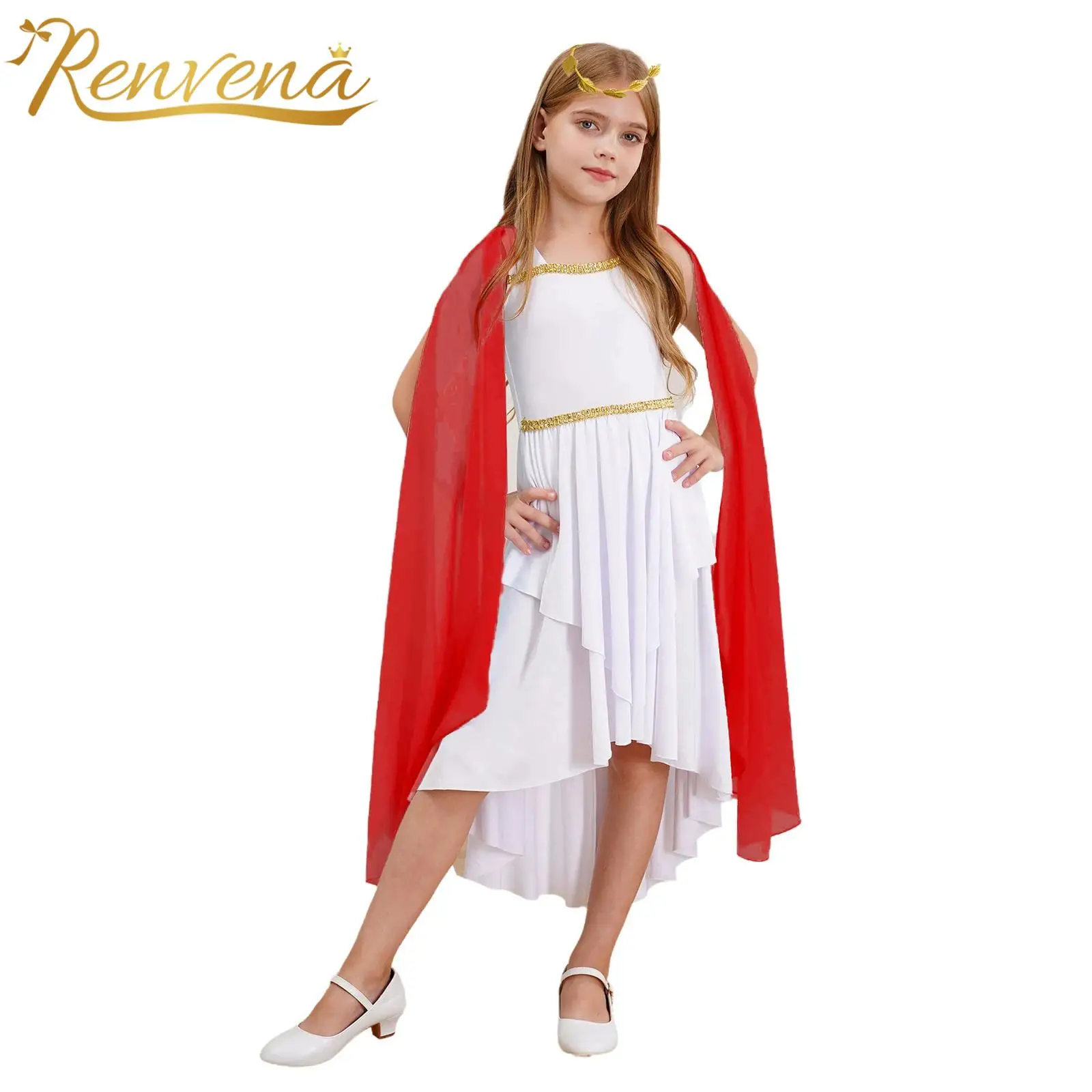 Kids Girls Roman Greece Flowy Dress with Headband Rome Ancient Greek Princess Toga Costume Childs Halloween Carnival Outfits
