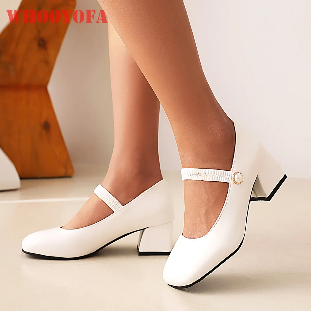 Brand New Elegant White Blue Women Pumps Sexy Med Chunky Heels School Lady Shoes Plus Small Big Size 30 10 43 45 48