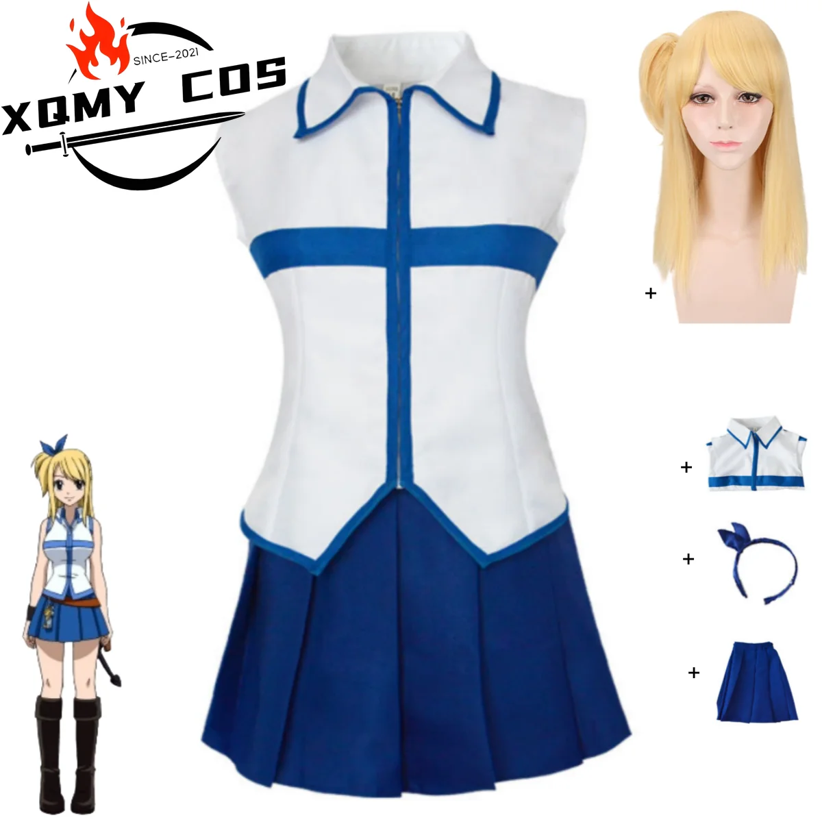 XqAnime FAIRY TAIL Lucy Heartfilia Cosplay Costume Slayers White Shirt Skirt Uniform Headband Wig Woman Sexy Carnival Party Suit