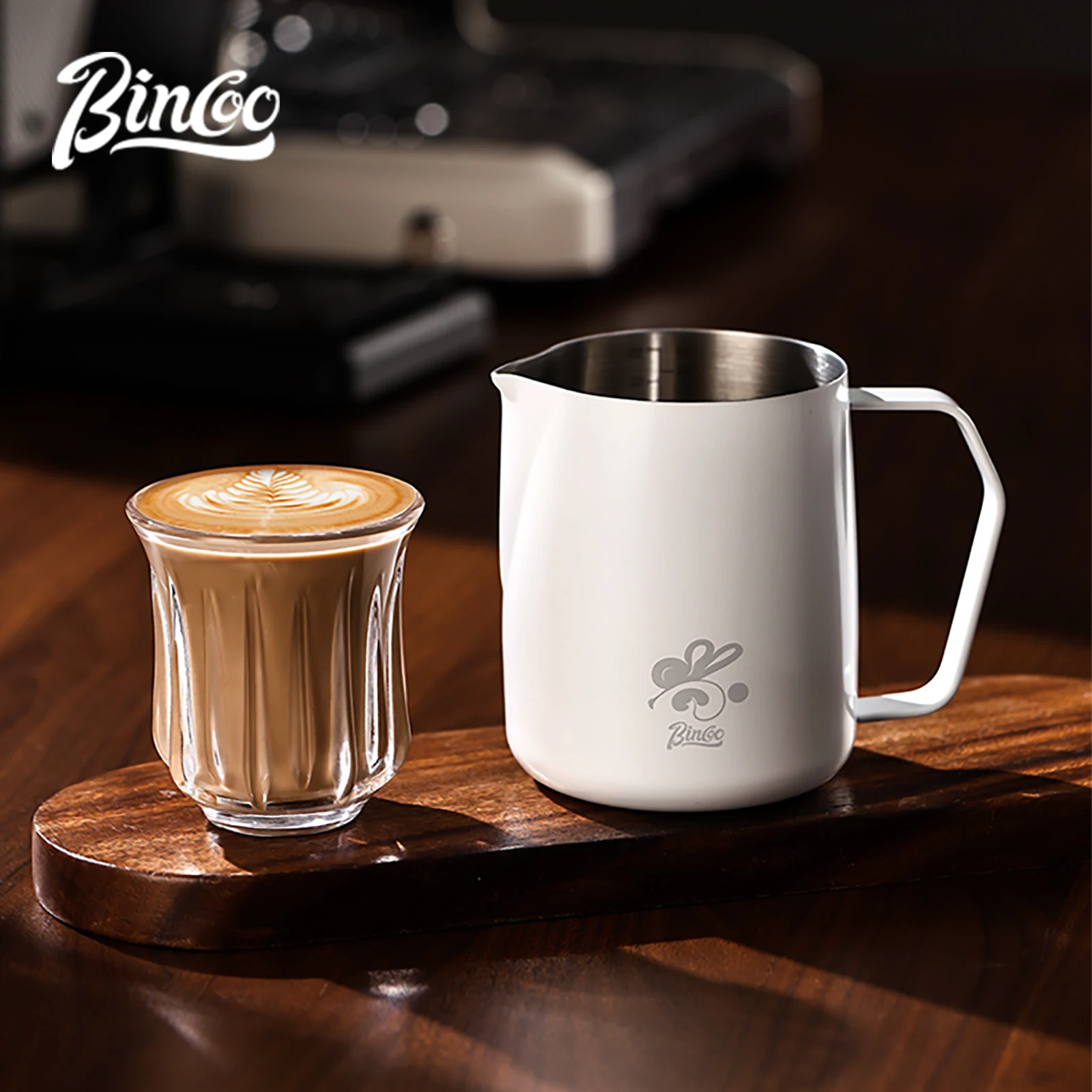 Bincoo Latte Art Pitcher Measurement Marks Sharp Spout Pressure Texture Design Precise Milk Flow Control Professional Barista