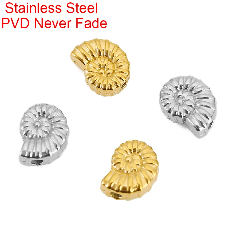 5pcs PVD Never Fade Stainless Steel Necklace Beads Lot 9mm Loose Spacer Shell Beads Bulk For Bracelet Making Jewelry Findings