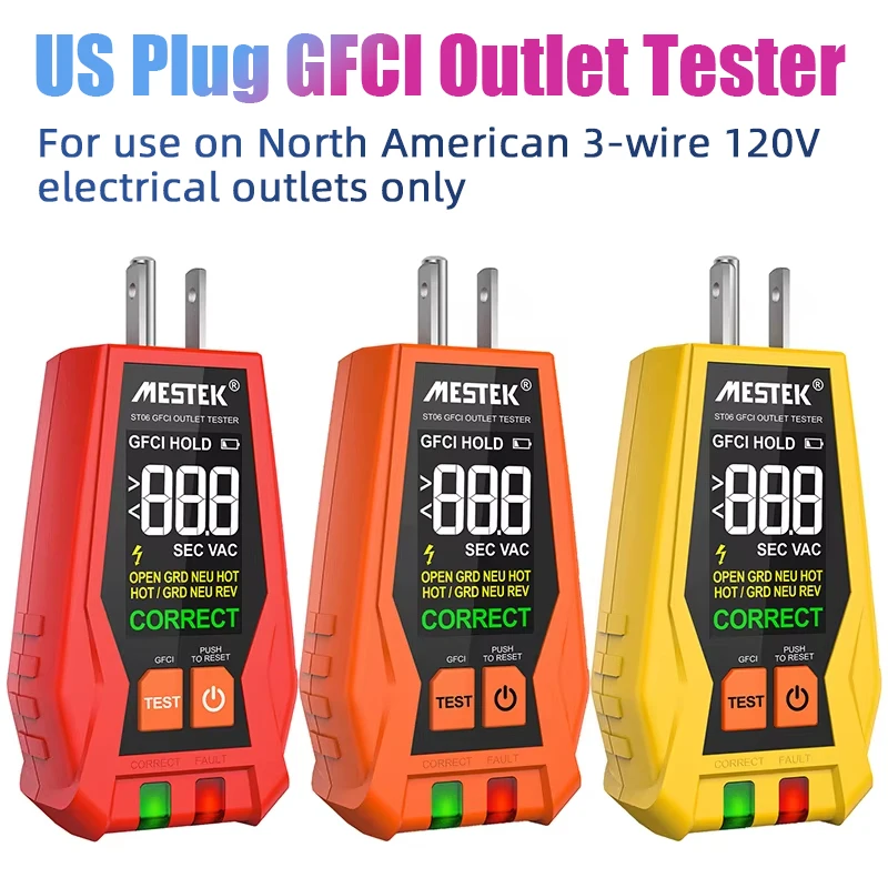 ST06 Outlet Tester with LCD Display, GFCI Tester, Standard 3-Wire 120V AC Voltage Tester Electrical Outlet Receptacle Tester