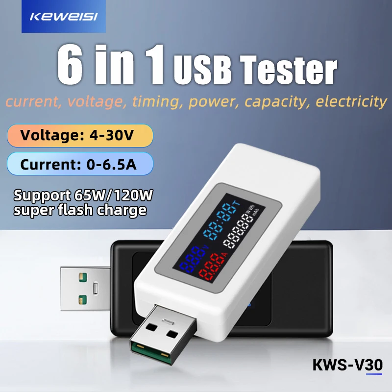 6 in 1 USB Tester DC Digital Voltmeter Amperimetro Current Voltage Meter Amp Volt Ammeter Detector Power Bank Charger Indicator