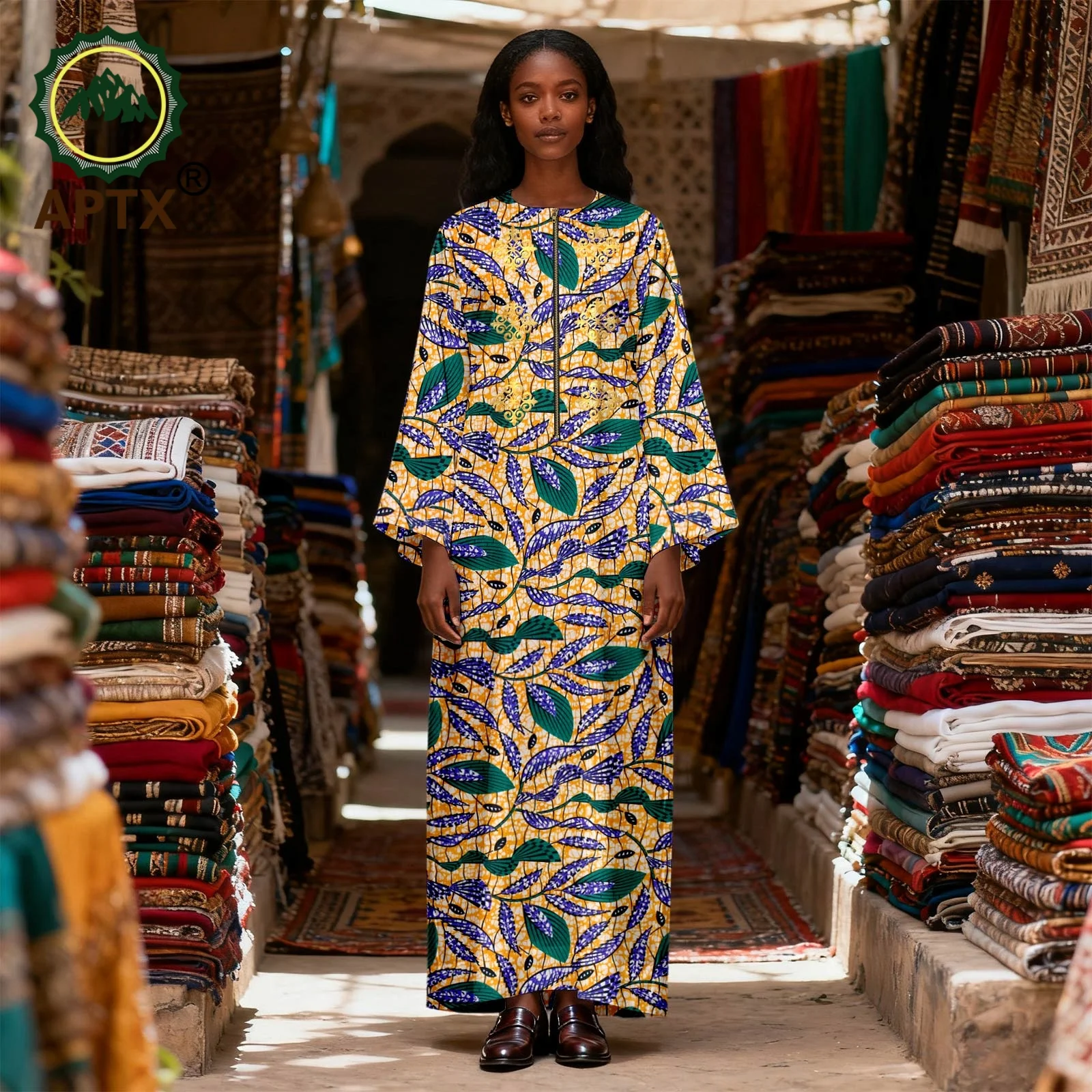 APTX Women's African Print Maxi Kaftan Dress Loose Short Sleeve Muslim Robe Islamic Clothing Dubai Boubou Abaya 2524014