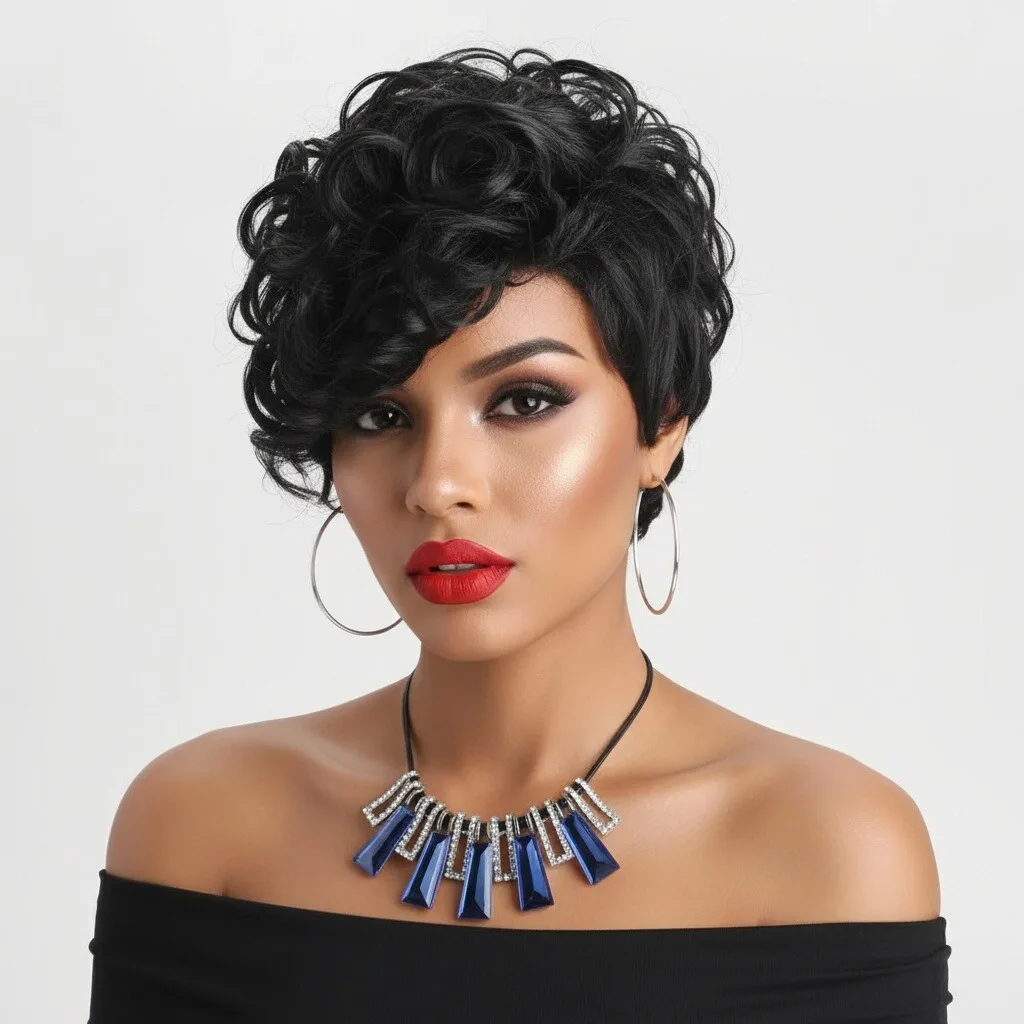 Curly Human Hair Wigs Full Machine Made Wigs For Woman Natural Color Pixie Cut Human Hair Wigs Pixie Cut Wigs HairUGo