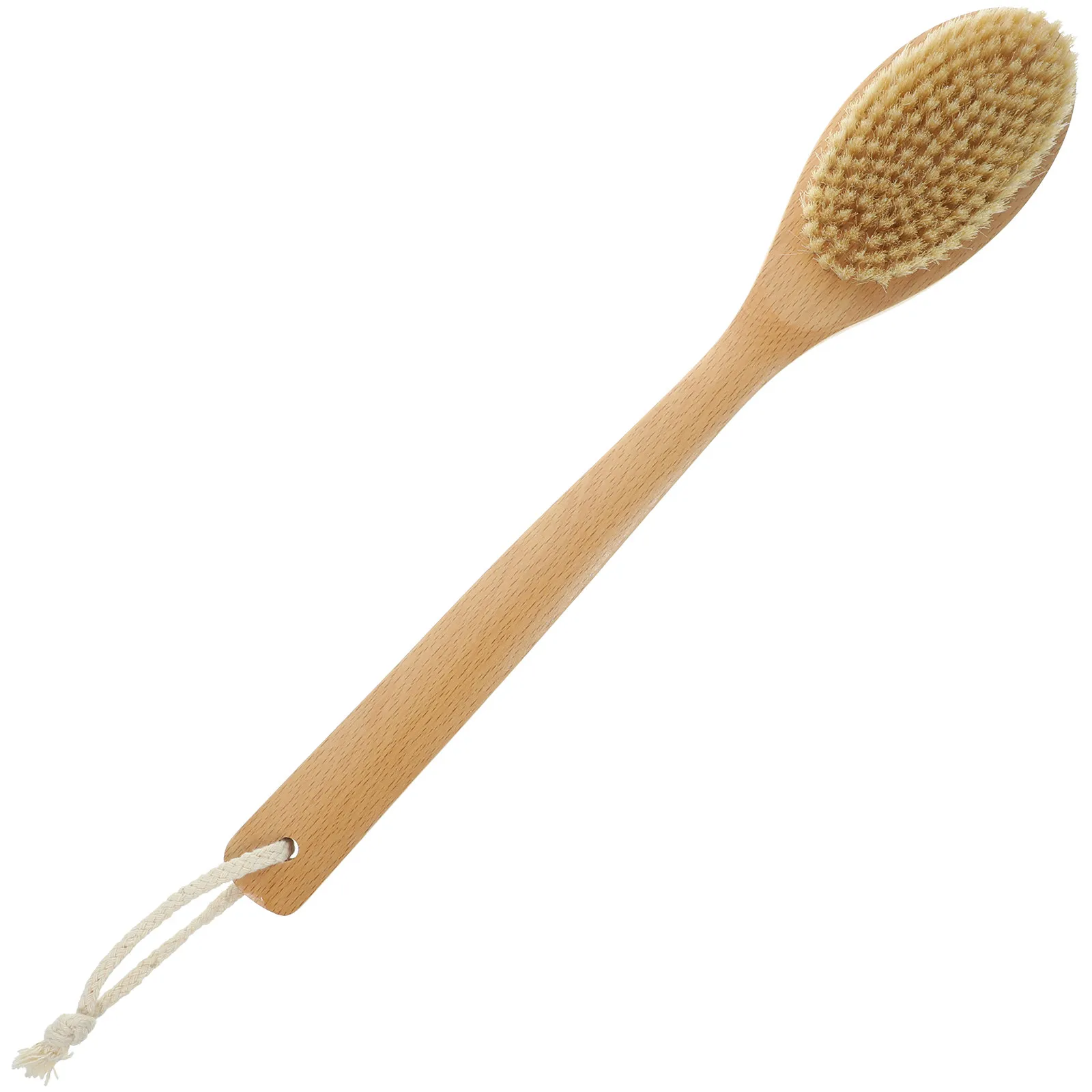 Premium Bristle Body Scrubber for Shower Back and Body Clean Beech Wood Handle Bath Brush Exfoliating Bathing Tool for Men Women
