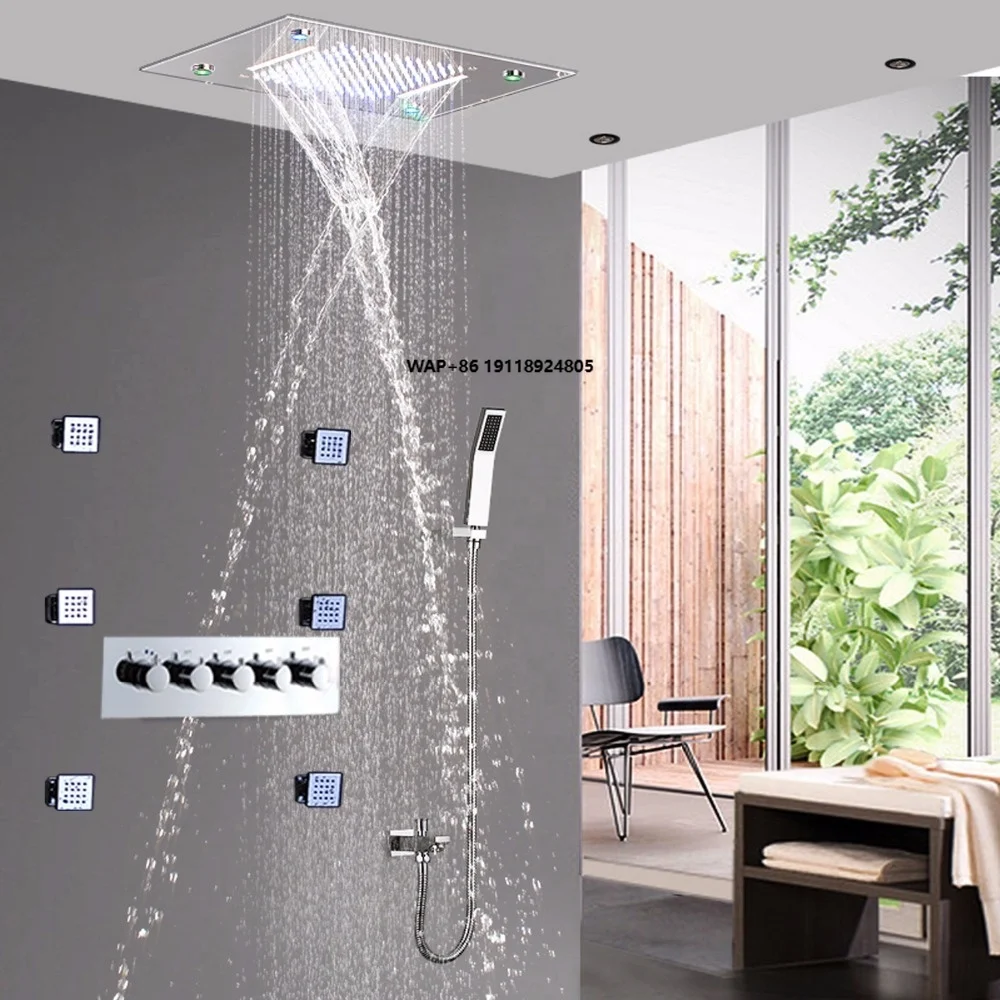 Brass Hot Cold Four Handle Shower Valve Stainless Steel 360x500 Ceiling Mounted LED Rain Bathroom Shower Faucet Spa Body Massage
