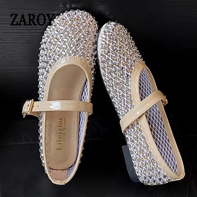 Luxury Crystal Casual Flat Shoes Soft Leather Round Toe Thick Soled Half Slippers Summer New Fashion Versatile Comfortable Mules