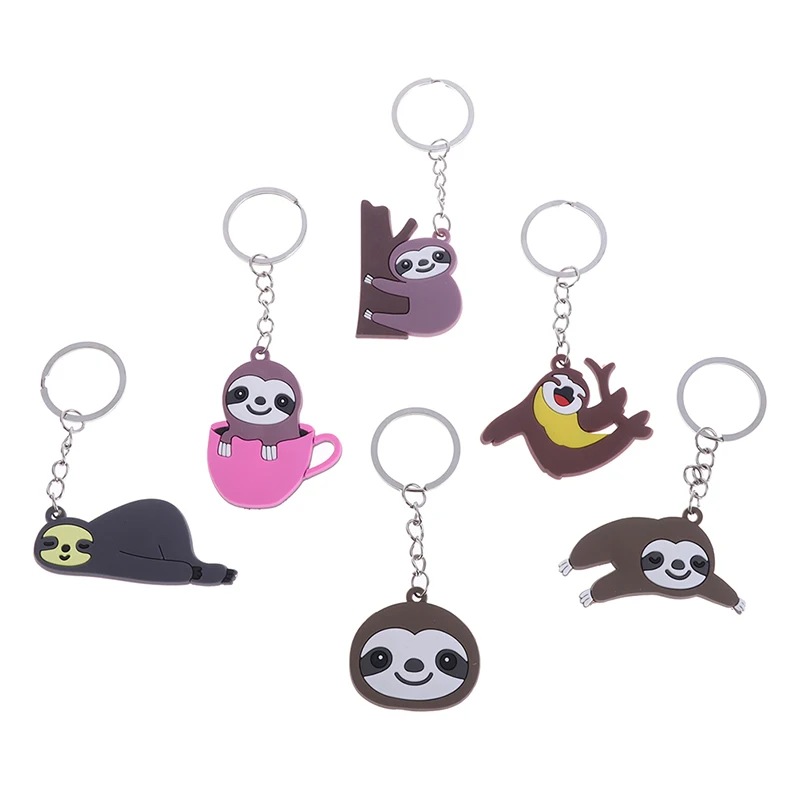 6 Types Fashion DIY Cute Fairytale PVC Sloth Keychain Key Rings Holder Alloy Key Chain For Woman Man Kids Gift Jewelry