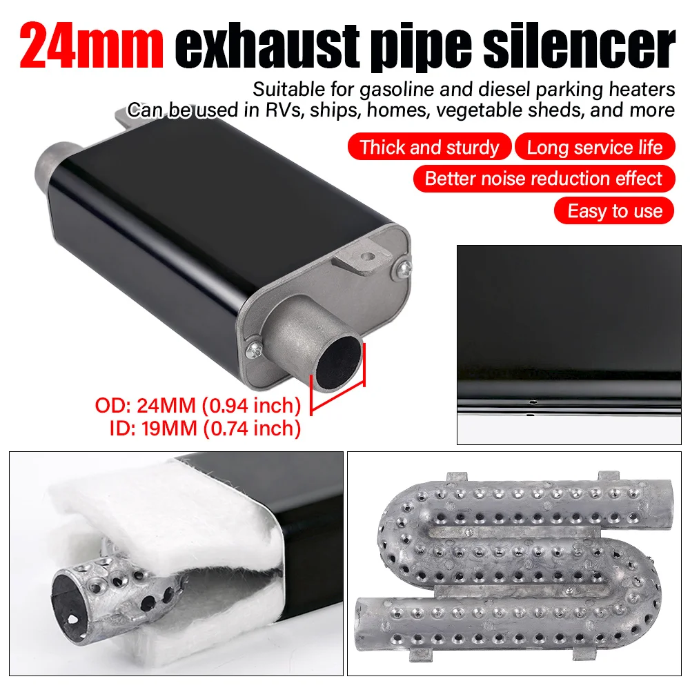 24mm Muffler Silencer S Curved Air Diesel Parking Heater Exhaust Pipe Aluminum Alloy Small Medium Large For Car Truck Camper VAN