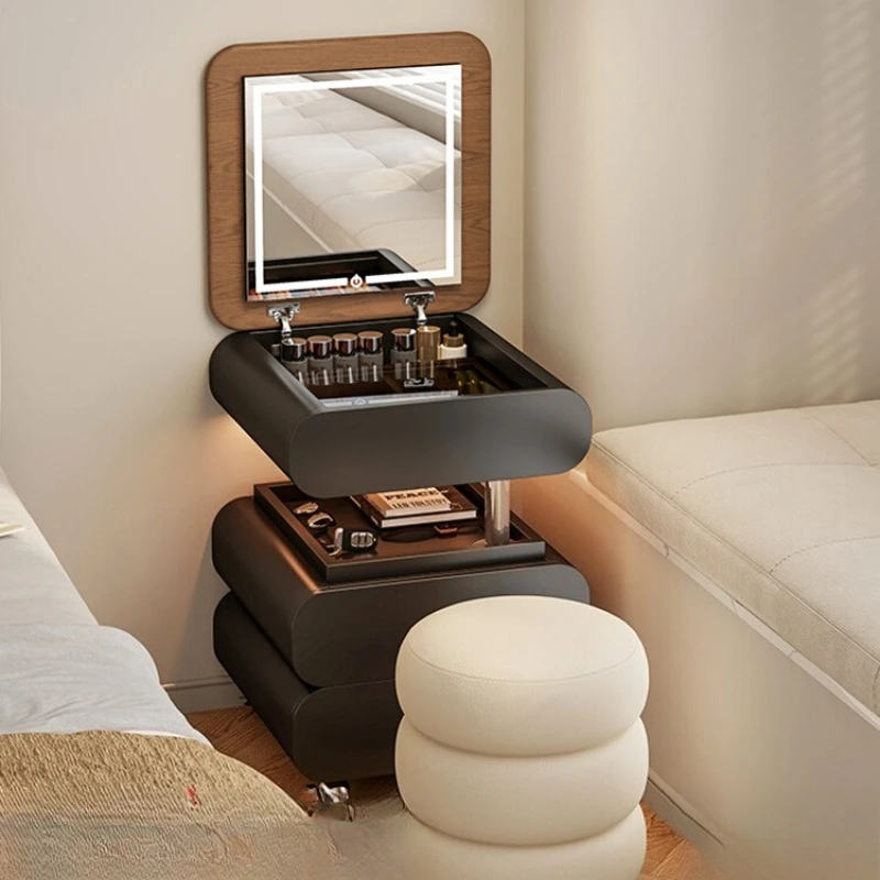 Modern Simple Bedroom Dressing Table Lighted Makeup Vanity Flip-Cover Small Apartment Storage Cabinet Multi-Functional Bedside