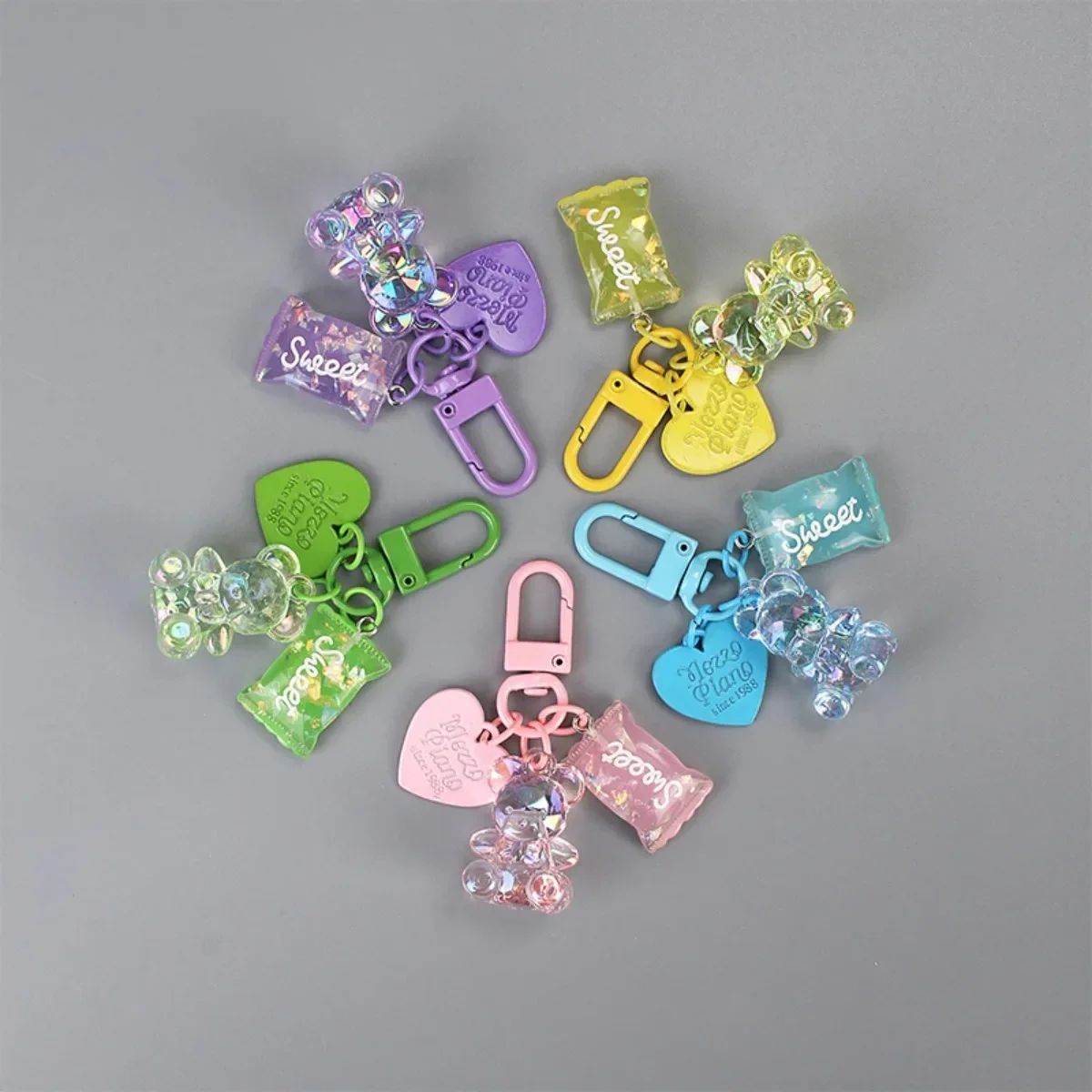 Cute Cartoon Bling Heart Bear Animal Candy Keychain - Creative Bag Car Earphone Box Key Ring Accessory for Friend Lovers