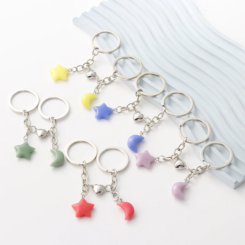 Couple Acrylic Keychains Colorful Moon Star Heart Snap Key Rings For Women Men Friendship Lovers Gift Handmade Jewelry